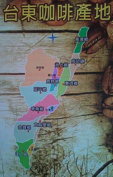 縱谷咖啡:卑南鄉部份地區、鹿野鄉、延平鄉、關山鎮、池上鄉
